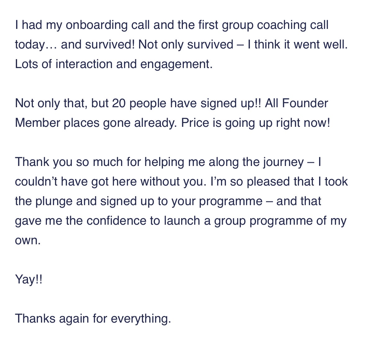 If you sold your programme at £1000 and filled 6 spots. That's £6,000 in revenue from just one launch, not to mention the invaluable skills you'll gain to replicate this success in the future.