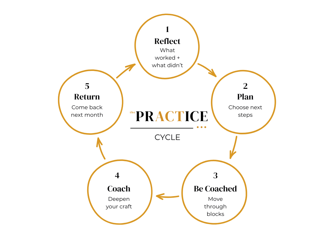 You’ll have experienced the rhythm and feel of The Practice – my new 12-month space for coaches who want steady progress without noise.